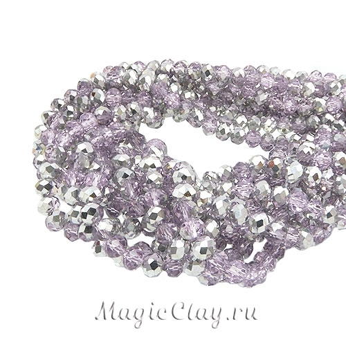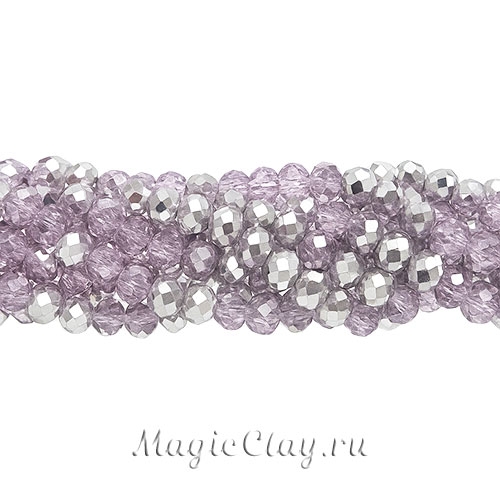 Бусины прозрачные холодного розового (сливового) цвета с покрытием серебро металлик. Цена указана за нить 85 шт.