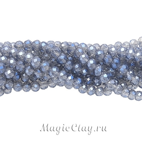 Бусины рондели граненые, стеклянные. Бусины прозрачные серого цвета. Бусины поностью с покрытием радужного синего цвета. Грани красиво переливаются на свету.