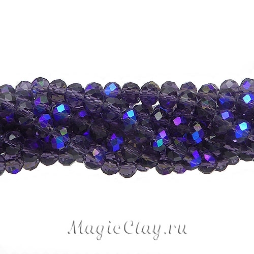 Бусины рондели граненые, стеклянные. Бусины прозрачные фиолетового цвета. Половина бусины с покрытием синего цвета металлик. Грани красиво переливаются на свету.