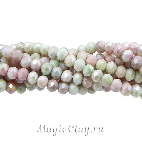 Бусины рондели граненые, стеклянные. На одной нити бусины в одной цветовой гамме. Бусины с перламутровым радужным покрытием. Грани красиво переливаются на свету.