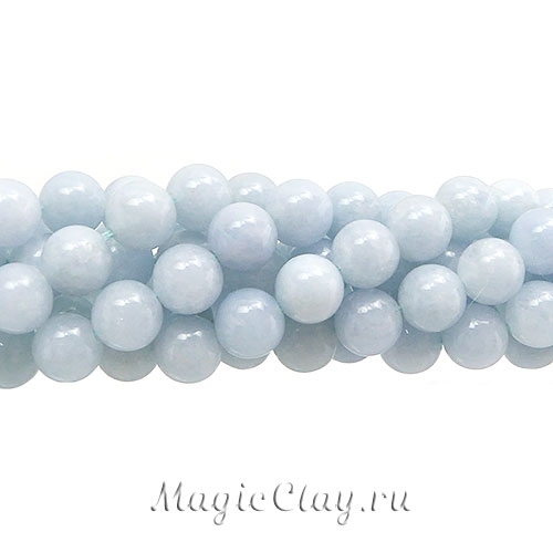 Бусины из натурального камня - халцедон. Бусины круглые имеют голубой цвет, очень похожий на аквамарин. Используются для изготовления ювелирных украшений, бижутерии ручной работы.