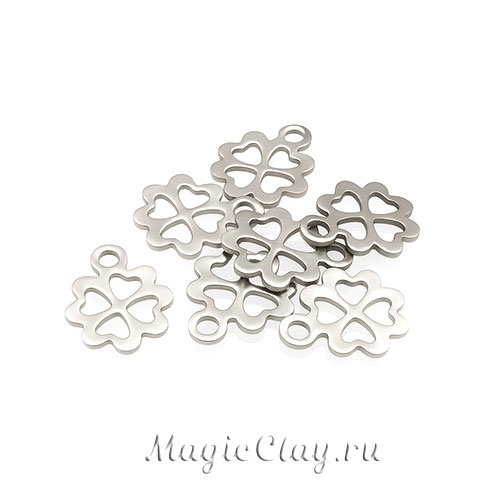Ажурная подвеска в форме цветка клевера, с лепестками в виде сердечек — стильный и символичный элемент для создания украшений. Подойдёт для серёжек, подвесок, браслетов или детской бижутерии. Благодаря качественной нержавеющей стали изделие не тускнеет, не ржавеет и подходит для частой носки. Лёгкий вес и нежный дизайн делают эту подвеску универсальной основой для творческих проектов.