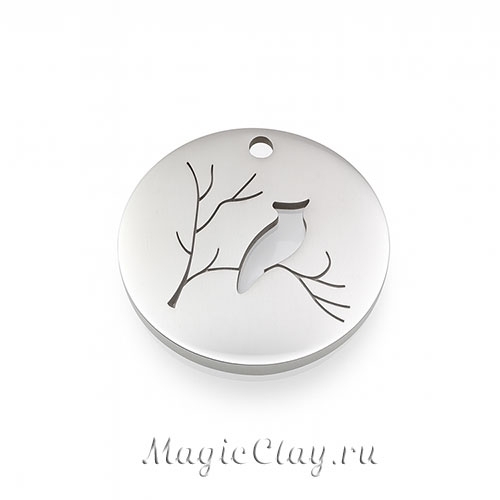 Фурнитура из стали (нержавеющая, хирургическая) - подвеска круглой плоской формы, двусторонняя. Подвеска с вырезкой в форме совы. Качественная стальная фурнитура, не темнеет со временем. Для ювелирных украшений высокого класса качества.