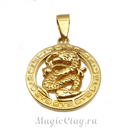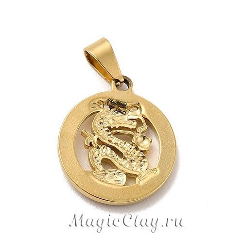 Подвеска Круг Дракон 20мм, сталь, цвет золото, 1шт
