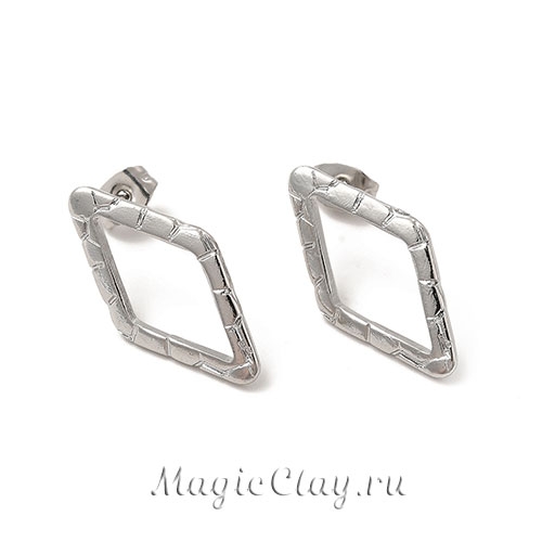 Основа для сережек гвоздиков в форме ромба с текстурной поверхностью.