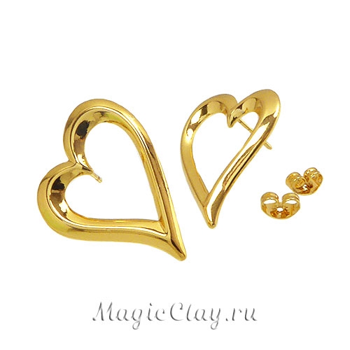 Основа для сережек гвоздиков в форме сердца. Имеют гладкую зеркальную поверхность. Покрытие - позолота 18К.