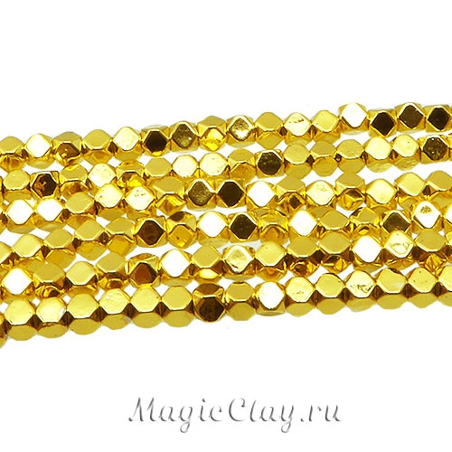Бусины из синтетического гематита (немагнитного), цвет золото светлое. Бусины в форме кубика с гранеными краями.